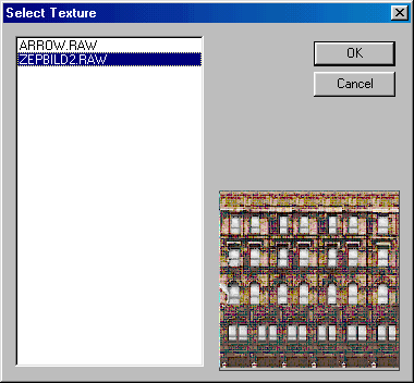 Browse to the texture you want to use. For our example, I will continue with the zep house. I will select ZEPBILD2.RAW.