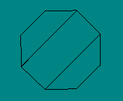 Since this model has eight corners, it's obvious that it cannot be done with just a single face. In fact, it will need a minimum of three faces. Therefore, we need to think about where the faces will go before we know how to define them. We must divide the octagon surface up into three and/or four cornered parts. Like this: