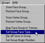 All faces will turn a green color. Next, goto Groups>Set Group Face Type:
