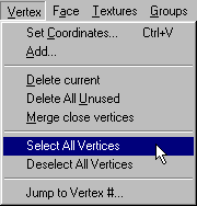 Open the model part that you will be wanting to move. For us, it will be the house. Now, goto Vertex>Select All Vertices: