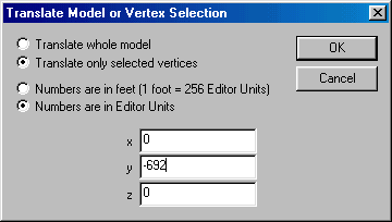 Enter the values that you want to use. In our case, it is to Translate only selected vertices, Numbers are in editor units, and -692 in the y value box. Click ok, and the house will now line up perfectly with the roof.