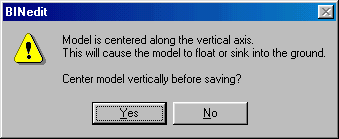 Under some circumstances you will not want to center the model (for instance, with trucks). In that case, click no. This will open a windows box where you can enter the name you want to save with. Unless, your model has a shiny face type. In that case you will see the following prompt: