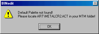 This is not a serious problem. It is just a reminder that you have to set up the program before it will run properly. Click OK. If you do not have mtm2 in the default C:\ directory or you do not have the "metalcr2.act" file in it, the following message will appear: