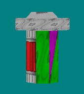 Design One of the best features of TireMaker is that it will calculate the location of all the verticies in a circle, and it will do it with precion every time. However, because it is a DOS program that creates OBJ files, the unfortunate part of it is that you cannot watch the circle as it is being formed; you cannot stop in the middle and change things on the fly. Therefore, it is important to be able to visualize what you want to do before you do it. In short, before you create something using TireMaker, you need to make a plan. For our hydrant, we will need two round parts that will be inserted one into the other after they have been mapped to textures. For example, like this: