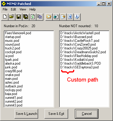 If you have 800 pods in your mtm folder, then it's very likely you will never need the extra paths feature of cowpod. However, I know many people, myself included, who have zero pods in the mtm directory. Some people even have pods saved on the desktop, of all places. I have separate locations for traxx, binedit, tracked2, and the game. Using the paths, I can easily mount up and test whatever I'm working on without the need to copy files all over the place and waste space with two and three (or more) copies of the same thing. Or, maybe you're just an organizational fiend who has all sorts of weird working configurations for your pods. The path feature in cowpod will cater to even more strangeness. The game can be on drive c: and your stock tracks on d: and your favorite list on e: and some beta tests on g: or whatever. And you can do it without notepad and without programs like "pathcopy". The path option adds flexibility and ease, if that's the sort of thing you do. It's that simple. If, on the other hand, you don't slice up your hard drive like a pizza, or you keep all your pods in sub folders off the game folder, then you can safely ignore the extra paths options. It's there if you want it. But it's not a required option. It's all about organization, how you work, what you're doing, and personal preference. This stuff, extra paths, could always be done before, but it was always a pain to do. Now, it's as easy as using any other pod mounting program.