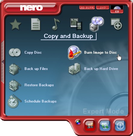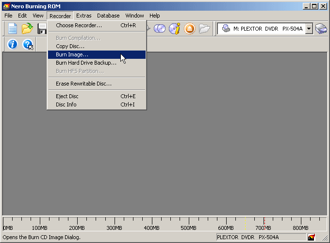 Step 3. Open Nero Burning ROM, and on the Recorder menu select Burn Image.