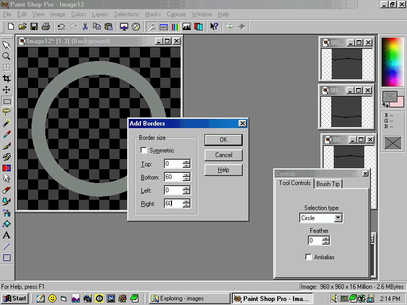 From the menu, goto Image>Add borders. Uncheck symmetric and type in Top=0, Bottom=60, Left=0, Right=60. Like this.
