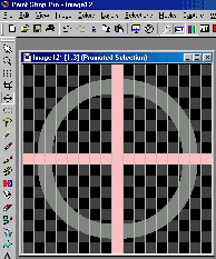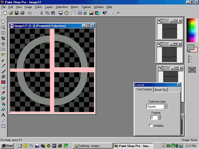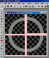 Set the shape selection tool to square, place the cursor at 480x480 (it is not dead center any more), and draw the upper right square outward to the edge of the image. Check the status line in the bottom left to be sure the square size is 480x480. Use the cursor to move the selection away from its original place. Now from the menu goto Selections>Promote to layer. You should be like this.