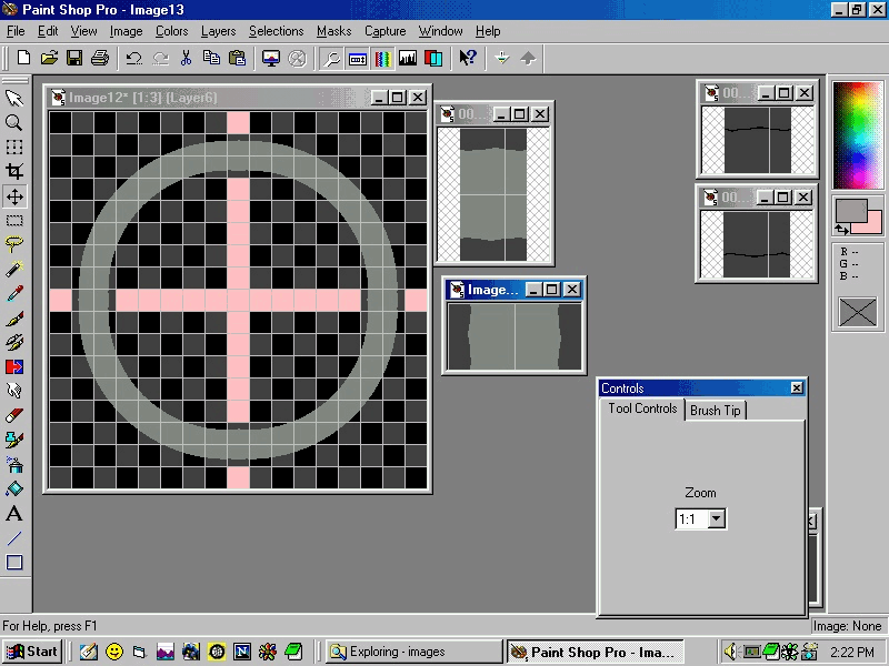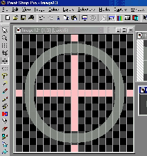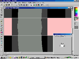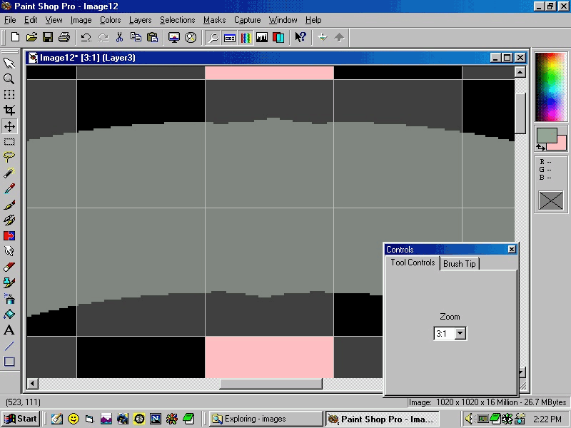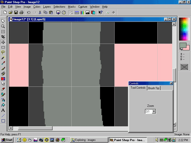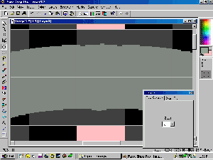 Now copy the 60x120 image and paste as layer onto the large image we've been working with. Move it to near the top, then zoom in large. Arrange it so that it fits perfectly between the left and right curves, and so that it stays aligned in the grid lines. Repeat for the bottom.