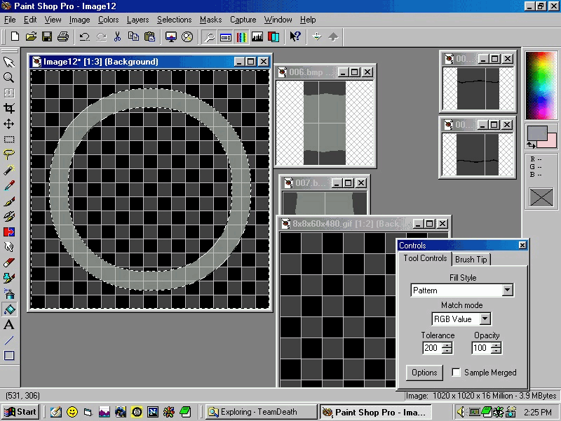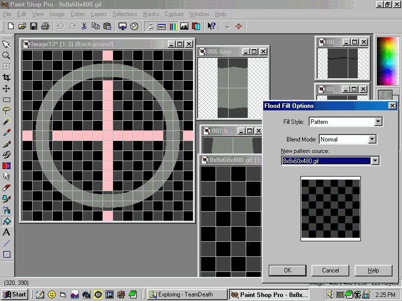 Open the 8x8x60x480.gif we used in step 2. Select the fill tool, set it as pattern, and set the 8x8x60x480.gif as the image to use.