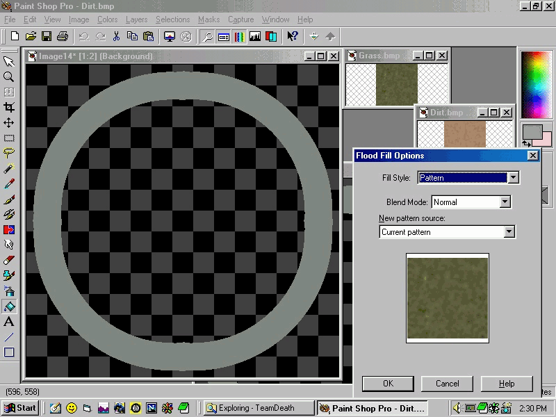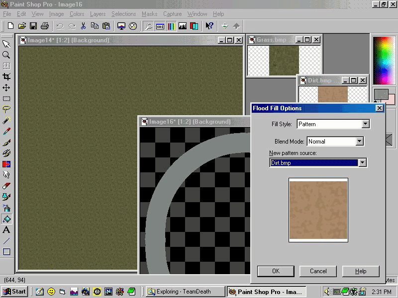 Make two copies of the template and open both. Now open your two textures. Load the grass texture into the fill pattern tool.