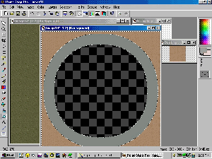 Fill one of the templates without regard to squares and road. Note. You could have filled any 900x900 graphic in this way, but the template is already made and very convenient to use. So, just set the fill tolerance to 200 and let the texture tile over the entire checkered area.