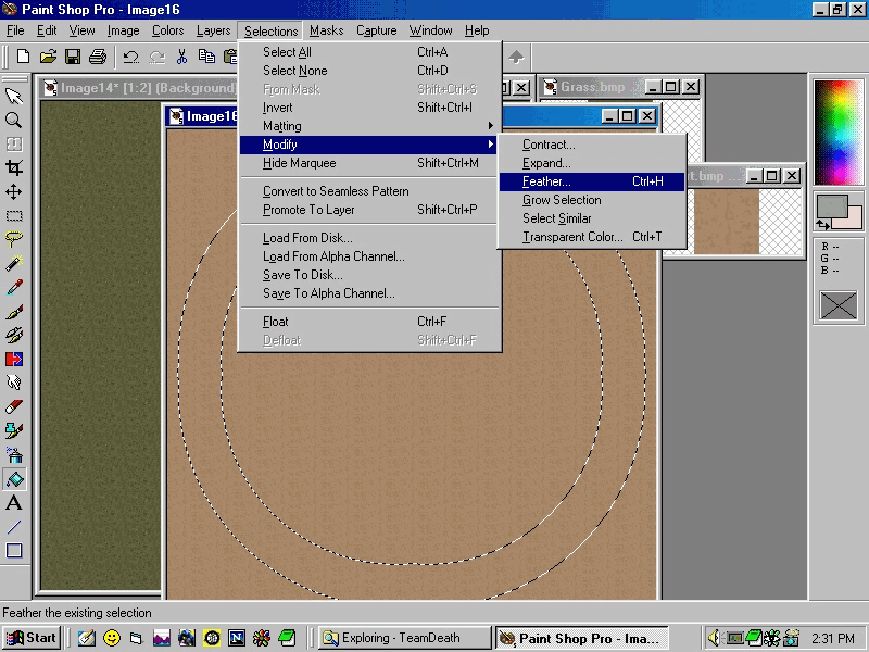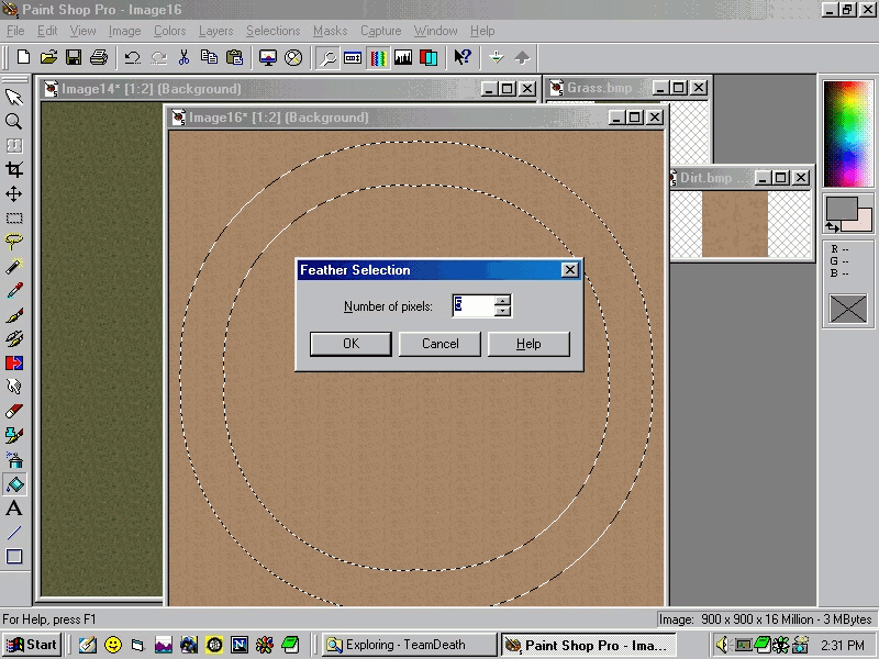 Finally, invert the selection again and fill the road area. Keep the selection active. Goto Selections>Modify>Feather