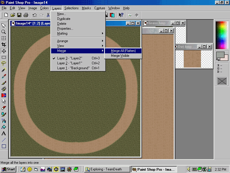 Remember, this will paste the road exactly at the center. Do not move it at all. From the menu goto Selections>Merge all layers.