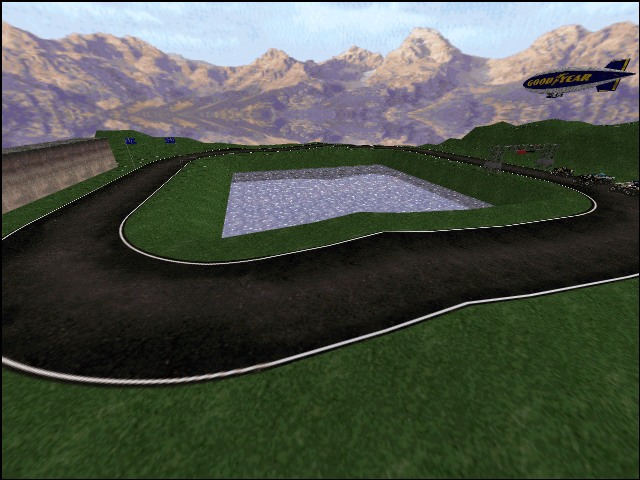 Tracked2 is a track (or Level) editor for use with Monster Truck Madness 2 (MTM2). This editor will allow you to create new tracks that can be added to and used in the full version of mtm2. This tutorial is a simple walk-through to help get you started on making your first MTM2 track. The procedure takes you through making a simple oval circuit with a couple of checkpoints to run in the game. Before you begin, you should print Tracked2's basic keyboard commands and have them at your side as you work. Lessons: Lesson 1 - Getting Started. Lesson 2 - Painting the terrain - textures. Lesson 3 - Making the course. Lesson 4 - Checkpoints. Lesson 5 - Misc. track components. Lesson 6 - Scenery and terrain. Lesson 7 - Ground-boxes. Lesson 8 - Making the Pod file. Hopefully at the end of it, your track will look something like this: