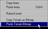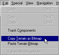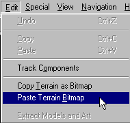 Following either of these procedures will copy the terrain bitmap to the windows clipboard. Next, start a new track or open a track you have been working on and paste the new terrain by using one of these methods: