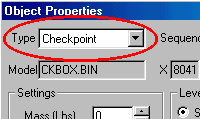 (Check Points) Check points are actually just special models with the property type set to check point. The bin files used for check points are one or the other of these: