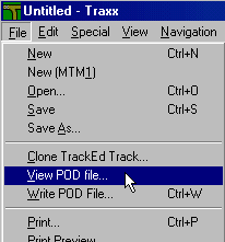 There are several ways you can obtain the models and art necessary to make your track. Generally speaking, that is what the entire Guild site is all about. More specifically, you can create custom bins and custom textures as described elsewhere within these pages. However, since the current topic is "starting out" we will restrict ourselves to existing models and art that are already made and waiting to be shaped into your personal vision. Extracting models and art is a two stage process. First, you must use the "view pod file" feature. To do this, go to Files/View Pod file... from the Traxx menu.
