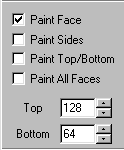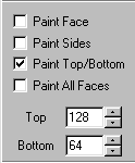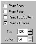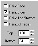 The side bar check boxes will determine where the texture gets applied. Now, I could go through some acrobatic verbal and grammatical gymnastics to explain what each one does, but I think, in this case, a picture is worth a thousand words. So, the following is a diagram explanation so that you can "see" the results of each paint feature.