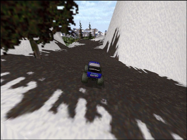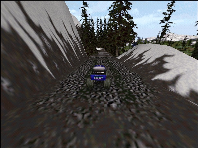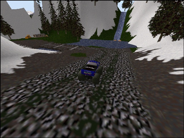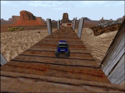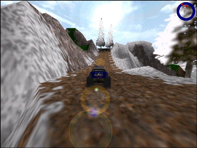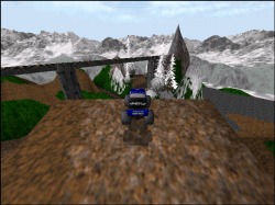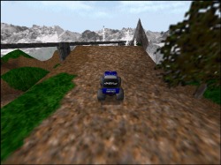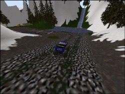 (Sight Lines) An often overlooked aspect of track making are sight lines. What are sight lines? Sight lines are the visual cues we provide racers so they know where the course is leading them. On a track like Crazy98, and others like it, this isn't really an issue because the road is clearly visible directly in front of you at all times. However, this is not always the case with many custom tracks. For the purpose of demonstrating good examples of sight line strategies, we'll look at Bobsled Rally Way by Spider, Snowbound TOC edition by Skyman, and Lakebed Extreme by GTX_Valvejob. Bobsled Rally WayThe first location we're interested in is the mid-race convergence of railway and roadway. The textures are a multitude of color and the correct path is by no means obvious. ![]() As you come up the hill toward the intersection, the surrounding terrain and direction of the road suggest the course should go straight. ![]() It is therefore very easy to imagine yourself going straight, and finding yourself on the wrong road, probably crashed, and out of the race. To help racers, Spider provides two visual cues. The first is the tree on the right; the second is the dirt texture leading right. After a few practice laps, the racer learns these visuals are unique to this location and are an aid in determining the correct driving line to follow. ![]() This intersection would be particularly devastating were it not for the visual references provided by the maker. For instance, moving forward just a couple hundred feet (in the correct direction), we are immediately confronted by yet another directional problem. ![]() Following this jump is a huge drop down to a large lake surrounded by some pretty rugged terrain. The approach gives no indication of what's to come, and a minor slip will put you on the roof with the potential of even losing your way. A good landing is crucial to a good lap. To assist in this task, Spider has planted two snow-capped, very tall trees that mark the landing area edges. The tips of these trees are visible from the approach to the jump and despite the obscurity of the drop, they very clearly mark where a racer wants to go in much the same way as the sights on a rifle show the marksman the trajectory of a bullet. In this way, a racer is able to 'thread the needle' so to speak. ![]() It is easy to take such markings for granted, but you better believe each and every visual cue has been inserted with an eye to providing clear sight lines. There is no coincidence or accident here. Everything has been done deliberately. A second example of the 'gun sight' strategy is found here. A road that approaches a blind spot straight on, and continues straight after the leap doesn't need obvious markers such as these. But when the jumps and blind spots occur in the middle of a bend, the markers can be the difference between a successful lap, or a crash. ![]() The last example from Bobsled Rally Way is quite the opposite of the thread the needle technique. In this spot, the roadway gives every indication of continuing straght but actually curves to the left up at the end. In order to prevent racers, who might be caught up in the heat of a race, from allowing their momentum to carry them straight and therefore up and out of the race, Spider plants two large trees smack dab in what appears to be the middle of the road. ![]() Racers may not recognize immediately which way the road veers off, but they can be confident that it does not continue onward. Knowing where NOT to go is sometimes as important as the correct direction. SnowboundSkyman uses the same barricade idea in Snowbound. ![]() He also threads the needle when he needs to. ![]() Viewing distance and momentum can conspire against a racer. At this spot, the road travels downhill, allowing a racer to gain considerable speed. The road is straight and sits in a hollow. Just ahead is a river/water fall which is also straight and sits in a v-shape in the terrain. We have our doubts about continuing through a river, but stranger things have been known in custom tracks. The atmosphere is one of speed. And, the combined effect of road, terrain and momentum lulls us into a false sense of security. We push forward at full throttle. ![]() Or rather, we go full throttle until we reach the bend in the road, at which point the brakes come on hard... often to no avail. ![]() Many a racer has washed their tires in that pond, and several have undoubtedly tasted the snow upside the opposite hill. A similar situation, but one that's handled adeptly, happens here. In this case, the road is a lengthy straight-a-way with a tunnel-like feel (mountains on the left, tall trees on the right). The two trees in the distance create the illusion of a threaded needle passage, and so the racer feels confident in their high speed approach. ![]() But that's as far as this decoy goes. The tree-line barricade quickly comes into view, thus preventing or at least discouraging an over-shoot at the curve ahead. ![]() Now, of course, you object: this is all well and good, but I'm not making a mountainous track with snow and pine trees; using these ideas will appear gimmicky in my track. And you'd be right. But remember, Bobsled Rally Way and Snowbound were chosen because they exemplify the topic at hand. How you provide visual cues is entirely up to you, and the context within which you're working. But the principles are the same regardless of the specific track environment. Namely, to include aids that point the way for racers in hard to navigate areas of your track. Lakebed ExtremeIn this example, we drive along the dock of what used to be a lake. The end-of-road barricade works the same here as it does above, with the added bonus that the boat tilted on its side is also pointing in the direction in which you must turn. Despite the lack of actual road and direction signs, there should be little doubt about where you must go next. ![]() Checkpoints do not occur in nature. They ar
