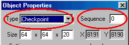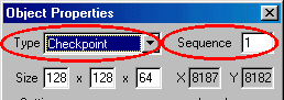 Again, in the properties box, set the type to check point and the sequence number to one. And, again, the size may vary depending on the size of the summit you make. Click OK.