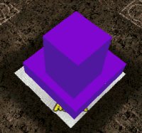 (Setting the Zones) You make a rumble track the same way you do any other track. That is, you must edit the terrain and paint it with textures. And, you must place the trucks around the summit area on which the actual rumble will take place. The scoring areas are created by using two object boxes whose type is set to check point. Just as in the case with regular circuits and rallies, check points are actually just special models with the property type set to check point. You must insert the object box into your track at the center of the summit. Do this the same way you would for object boxes at the base of check point flag poles or the base of trees. For details please see here. For the scoring area, insert the first box like this: