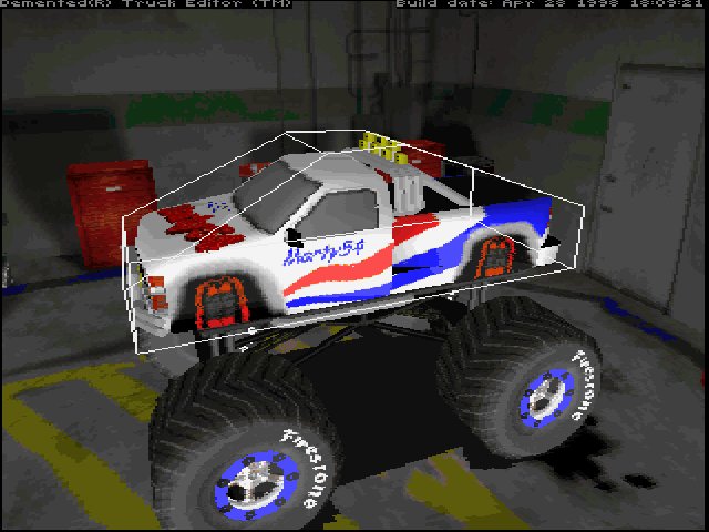 (Viewing Scrape Points) Scrape points define the edges of your truck in the game. They are what stop other models from just passing right through the body of your truck. Yes, we need them. However, setting them manually can be a very tedious process. Fortunately, Tracked2 automatically adjusts and sets the scrape points when you load the TRK file. You may view them and the outline they create by pressing "S" on the keyboard. Press "S" again to turn the view off.